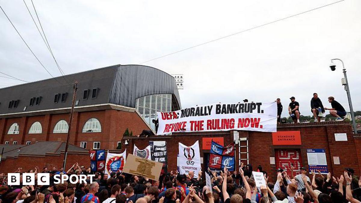 Crystal Palace supporters have staged a protest against Uefa’s decision to demote the club to the Conference League.On Tuesday, hundreds of fans marched to Palace’s Selhurst Park ground carrying banners and chanting against European football’s governing body.The Eagles, who qualified for the Europa League by winning the FA Cup in May – their first major trophy – were demoted to the lower tier of Uefa competition after breaching multi-club ownership rules.American businessman John Textor owns a stake in Crystal Palace and is the majority owner of French club Lyon, who have also qualified for the Europa League.The rules of European football’s governing body state clubs owned, to a certain threshold of influence, by the same person or entity cannot compete in the same European competition.Uefa’s rules set a deadline of 1 March 2025 to show proof of multi-club ownership restructuring – a deadline which Palace missed.Textor is currently in the process of selling his stake in Crystal Palace to New York Jets owner Woody Johnson.Nottingham Forest, who finished seventh in the Premier League last season, are set to replace Palace in the Europa League.Palace are expected to take their case to the Court of Arbitration for Sport (Cas).”At the end of the day it’s an injustice, just by a couple of admin errors. We qualified for it,” Nick Philpot from the Red and Blue Review podcast said at the march.”We won the cup – it should be we go into it without any question about it. “You’re penalising the entire club and the fanbase. Why would you do that?”Last week, Crystal Palace chairman Steve Parish called the decision “a bad day for football” and “a terrible injustice”. “We’ve been locked out of a European competition on the most ridiculous technicality,” he said. “Supporters of all clubs should be devastated for us.”Uefa has been approached for comment.