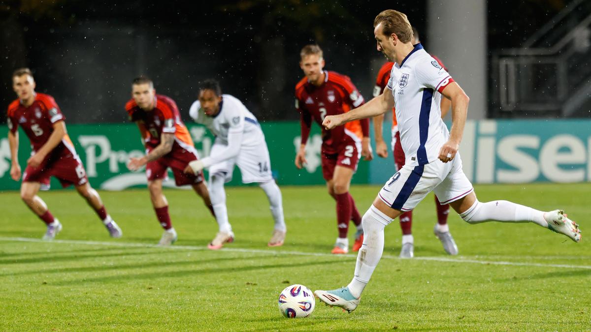If the 5-0 win in Serbia last month was the statement result in Tuchel’s tenure so far, this latest thrashing was another sign of the assuredness and ruthlessness in the team. Anthony Gordon opened the scoring, Kane added two more in the first half, and there was an own-goal as well as a strike from substitute Eberechi Eze after halftime.“Brilliant — such a good mood in the dressing room,” Tuchel said, while England defender John Stones added: “We’re building something special.” Portugal held Expect Ronaldo still to get to a record sixth World Cup, but he must wait another month for that to be confirmed.Portugal missed a chance to wrap up qualification early, with Szoboszlai converting a low cross at the back post to quieten the home fans at the Estádio José Alvalade.Attila Szalai gave Hungary an eighth-minute lead with a header from a corner before the enduring Ronaldo stole the show, finding space to tap in his 142nd and 143rd international goals — another record he holds in the men’s game.The Al-Nassr striker has now scored at least two goals in a game for Portugal on 37 occasions, UEFA said.Portugal needs just a point from its next match, in Ireland on Nov. 13, to clinch a seventh straight qualification to the World Cup.Merino double for SpainOn a night of scoring doubles, Mikel Merino netted twice for Spain as the European champions made it four wins from four matches in qualifying and are yet to concede a goal.After an own-goal, Mikel Oyarzabal added a late fourth for Spain, which plays Georgia away and Turkey at home next month.Turkey, for whom Merih Demiral scored twice against Georgia, has not just three points but an inferior goal difference of 12 to make up to the Spanish.Snipers on roof Another player with two goals was Mateo Retegui for Italy in Udine, where the heavy police presence included snipers on the roof of the 25,000-seat Stadio Friuli.Less than 10,000 tickets were sold for the match that passed off without major disruption on the field, after earlier skirmishes between protesters and police on the streets of the city. Published – October 15, 2025 10:59 am IST