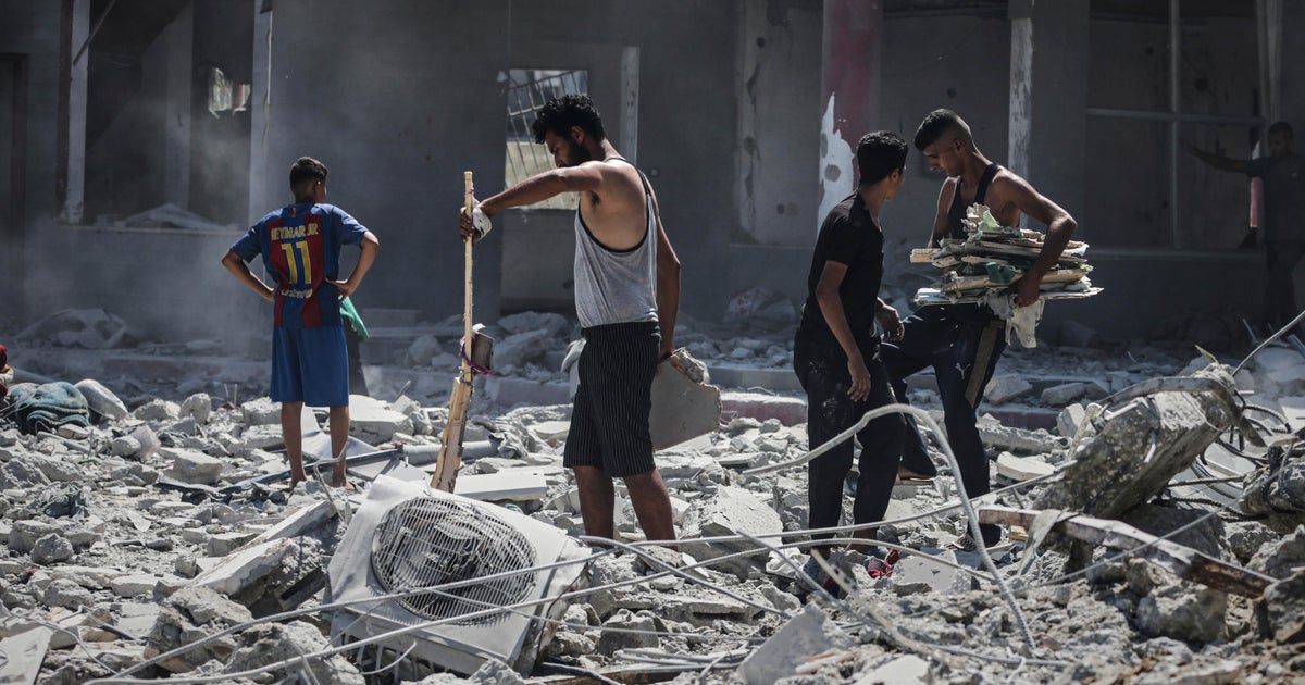 Palestinians inspect the damage after an Israeli army airstrike on a high-rise building in Gaza City, Friday, Sept. 5, 2025, after the Israeli army issued a prior warning.