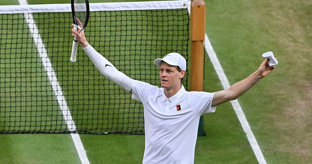Jannik Sinner ended a five-game drought against rival and two-time defending champion Carlos Alcaraz to win his first Wimbledon men’s singles title on Sunday, 4-6, 6-4, 6-4, 6-4.The No. 1-ranked Sinner earned his fourth Grand Slam title overall, moving him one away from No. 2 Alcaraz’s total as the two young rivals separate themselves from the rest of the pack in men’s tennis.Alcaraz won the first set 6-4 but Sinner broke the Spaniard in the opening game of the second set and then held serve the rest of the way. That was despite being interrupted by a fan in the stands popping open a champagne bottle as Sinner was getting ready to serve out the game.