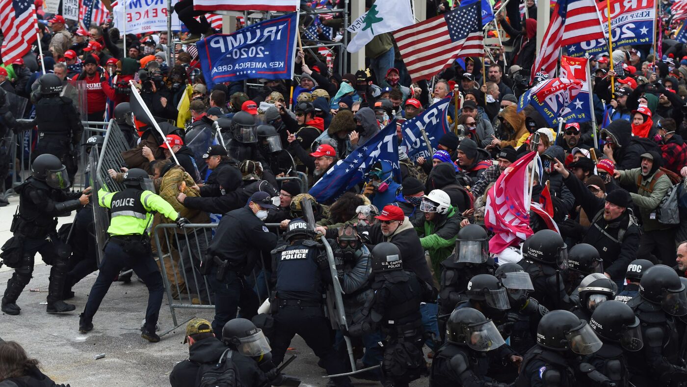 Supporters of President Trump clash with police and security forces as they push barricades to storm the U.S. Capitol in Washington, D.C on January 6, 2021.