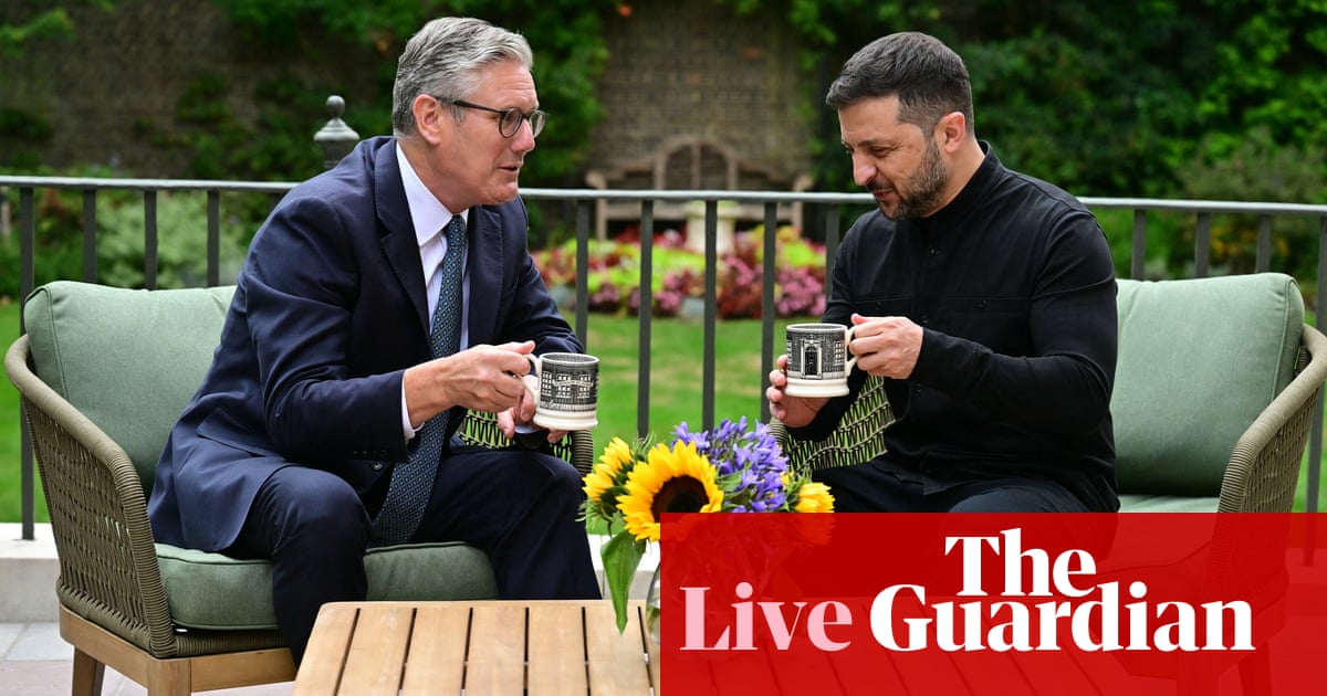 ShareKeir Starmer to meet Volodymyr Zelenskyy in Downing StreetKeir Starmer will be joined by the Ukrainian president Volodymyr Zelenskyy at Downing Street on Thursday morning, as Europe braces for the outcome of Donald Trump’s face-to-face discussions with his Russian counterpart later this week.The prime minister’s meeting with Zelenskyy comes after he said Britain stood ready to “increase pressure” on Russia if necessary. Meanwhile, Trump threatened Russia with “severe consequences” if a ceasefire was rejected by its leader.During a call with the US president and European allies on Wednesday, Starmer praised Trump for his work to bring forward a “viable” chance of an end to the war.Keir Starmer and Ukraine’s president Volodymyr Zelenskyy leave 10 Downing Street after a meeting in London on 23 June 2025. Photograph: Frank Augstein/APConcerns have been raised over Zelenskyy’s exclusion from the meeting between Trump and Putin, which is scheduled to take place in Alaska.Speaking on Wednesday, Starmer said: