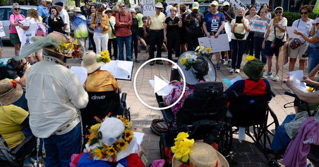 new video loaded: Large Protests Flood Streets to Denounce TrumptranscriptBacktranscriptLarge Protests Flood Streets to Denounce TrumpKnown as No Kings Day, the demonstrations built off a similar event in June.What do we want? Trump out. When do we want it? Now. Hey, hey, what do you say? No kings in the U.S.A. Tell me what democracy looks like. This is what democracy looks like. Let the world know that we will suffer no king. We will put the United States back on a course to lead the world in fair governance, together. No thrones, no crowns, no kings.Known as No Kings Day, the demonstrations built off a similar event in June.By McKinnon de KuyperOctober 18, 2025