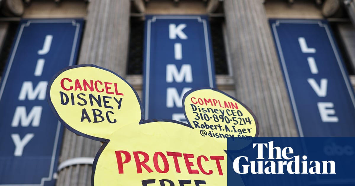 Late-night television hosts credited people who boycotted Disney for getting Jimmy Kimmel’s late-night TV show back on the air after the corporation had indefinitely suspended Kimmel amid pressure from the Trump administration.“We got word that our long national late-nightmare is over,” Stephen Colbert said during his show on Monday night.“Once more, I am the only martyr in late night, unless … CBS, you want to announce anything?” Colbert joked, referencing CBS’s decision to cancel his show earlier this year. “Still no? Because the money thing, I forgot.”Protests against Disney’s suspension of Kimmel and canceled subscriptions to Disney products mounted as concern over free speech rights grew. High-profile people joined in the calls to boycott. Democratic New York City mayoral candidate Zohran Mamdani said he wouldn’t do a town hall on a local ABC channel, reversing course after Kimmel’s reinstatement.Some Republicans, including Ted Cruz and Rand Paul, also spoke out against the Federal Communications Commission’s chair pressuring Disney.“Here’s why Disney folded after Kimmel was suspended: Google searches for cancel Disney+ and cancel Hulu spiked,” Colbert said, “which explains why the other trending search was ‘how to entertain my child without Bluey’. So Disney put Kimmel back on because you, the American people, were upset.”Comedian Jon Stewart credited the boycott campaign of “pretending that you were going to cancel Hulu while secretly racing through four seasons of Only Murders in the Building” on his show on Monday night.“Wasn’t it interesting to try and figure out all the tentacles Disney has in your daily life?” Stewart quipped. “It’s one thing to swear off cruises, but the Avengers. How is it possible that by getting rid of one company, I can’t watch Winnie the Pooh or Monday Night Football or listen to early Hillary Duff?”Seth Meyers pointed to the “massive national backlash to Trump’s crackdown on free speech, even among conservatives”.“I haven’t seen a poll yet, but I think if you asked Americans if the president should be dictating what TV hosts can and can’t say, you’d get about 3% positive,” he said before playing a clip of Trump claiming that the coverage he receives is “97% negative”.Disney said it would bring Kimmel back on Tuesday, saying it had “spent the last days having thoughtful conversations with Jimmy, and after those conversations, we reached the decision to return the show on Tuesday”.In explaining its decision to take the show off the air, the company said it wanted to “avoid further inflaming a tense situation at an emotional moment for our country” and that some of Kimmel’s comments were “ill-timed and thus insensitive”.The suspension came after the FCC chair, Brendan Carr, threatened that the agency could come after outlets that aired Kimmel’s show after comments Kimmel made about Charlie Kirk’s shooter. Kimmel had said that the “Maga gang” was “desperately trying to characterize this kid who murdered Charlie Kirk as anything other than one of them and with everything they can to score political points from it”. The comments came before charging documents alleged the shooter had left-leaning viewpoints.“But frankly, when you see stuff like this, I mean, look, we can do this the easy way or the hard way,” Carr said on a podcast. “These companies can find ways to change conduct and take action, frankly, on Kimmel or, you know, there’s going to be additional work for the FCC ahead.”Companies that hold the licenses for local channels that carry Kimmel’s show said they would pre-empt it, not airing it on the stations they own. Then, Disney said it would suspend Kimmel’s show indefinitely.However, not all stations in the US will broadcast Kimmel’s return.Sinclair Broadcast Group said it would not air the show on its ABC affiliate stations.“Beginning Tuesday night, Sinclair will be pre-empting Jimmy Kimmel Live! across our ABC affiliate stations and replacing it with news programming,” said Sinclair, which has the nation’s largest number of the network’s affiliate stations.“Discussions with ABC are ongoing as we evaluate the show’s potential return,” the group said in a statement late on Monday.Another broadcast group, Nexstar, also said that it would continue to pre-empt the show.In a statement, Nexstar said: “We made a decision last week to pre-empt Jimmy Kimmel Live! following what ABC referred to as Mr Kimmel’s ‘ill-timed and insensitive’ comments at a critical time in our national discourse. We stand by that decision pending assurance that all parties are committed to fostering an environment of respectful, constructive dialogue in the markets we serve.”The actions of Nexstar and Sinclair combined mean that Kimmel’s show won’t air on almost a quarter of ABC’s affiliates.