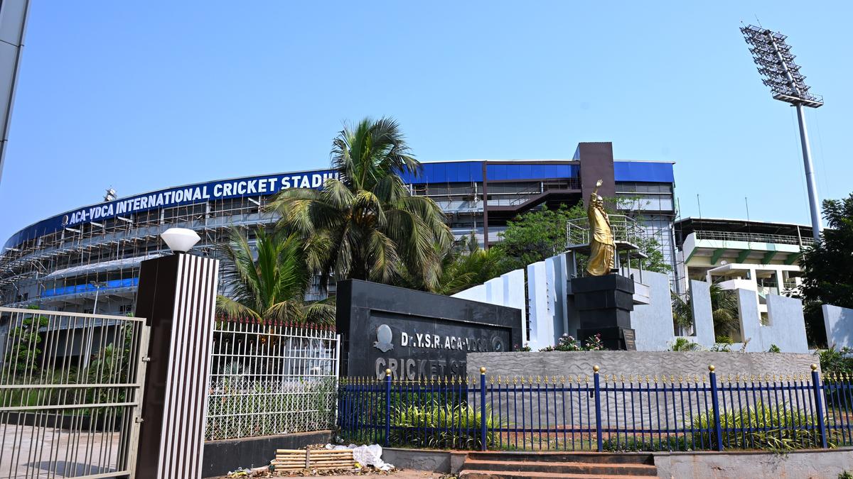A view of the ACA-VDCA cricket stadium in Visakhapatnam. Andhra Pradesh government will inaugurate the Mithali Raj stand and Raavi Kalpana stand at the stadium on October 12, 2025.