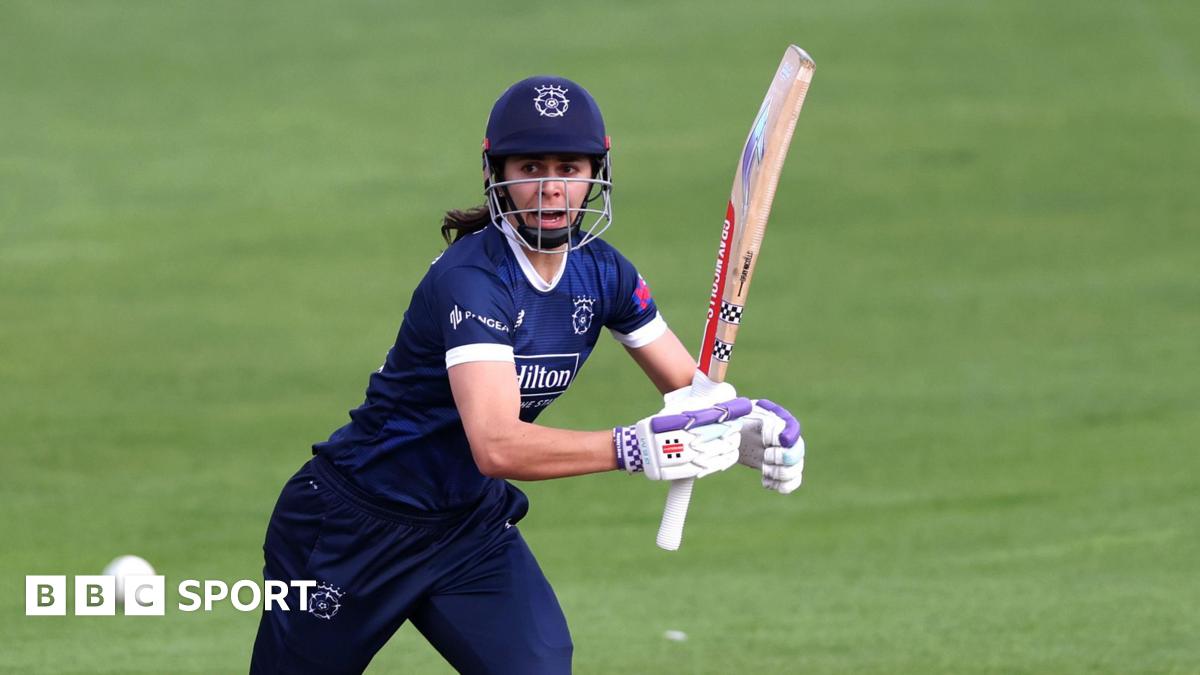 Freya Davies (2-15) and Bex Tyson (2-20) starred with the ball for Hampshire as Essex fell short of a target of 102, finishing on 97-6.Earlier, Maia Bouchier and Freya Kemp both made 31 in what looked an under par score of 101-7, Esmae MacGregor the pick of the home attack with 2-17.In reply, Sophie Munro top-scored with an unbeaten 28 but Hampshire eked out a narrow win to all but mathematically assure their semi-final spot.At Emirates Old Trafford, an impressive bowling display set Somerset up for victory against second-placed Lancashire.They restricted their hosts to 169-9 from 44 overs and, after a 90-minute rain delay, chased a revised 164 from the same allocation inside 35 for a bonus point.Ellie Anderson’s seam accounted for three wickets and Amanda-Jade Wellington’s leg-spin two before Niamh Holland and unbeaten Gibson contributed 44 apiece.Wellington also added a steadying 25 not out to cap her impressive day.Inserted Lancashire had been put under early pressure at 69-7 inside 24 overs before England seamer Kate Cross’ composed 51 off 58 balls led a fightback which ultimately failed to prevent defeat.It was a frustrating day in Birmingham for Warwickshire and Durham, who both needed maximum points to boost their slim Finals Day chances, only for rain to prevent any play at all.At Trent Bridge, meanwhile, The Blaze, in third, and fourth-placed Surrey had to settle for two points each in their quest for semi-final places.Surrey had the hosts in trouble as Alexa Stonehouse took 2-23 but the weather intervened to preclude further play.
